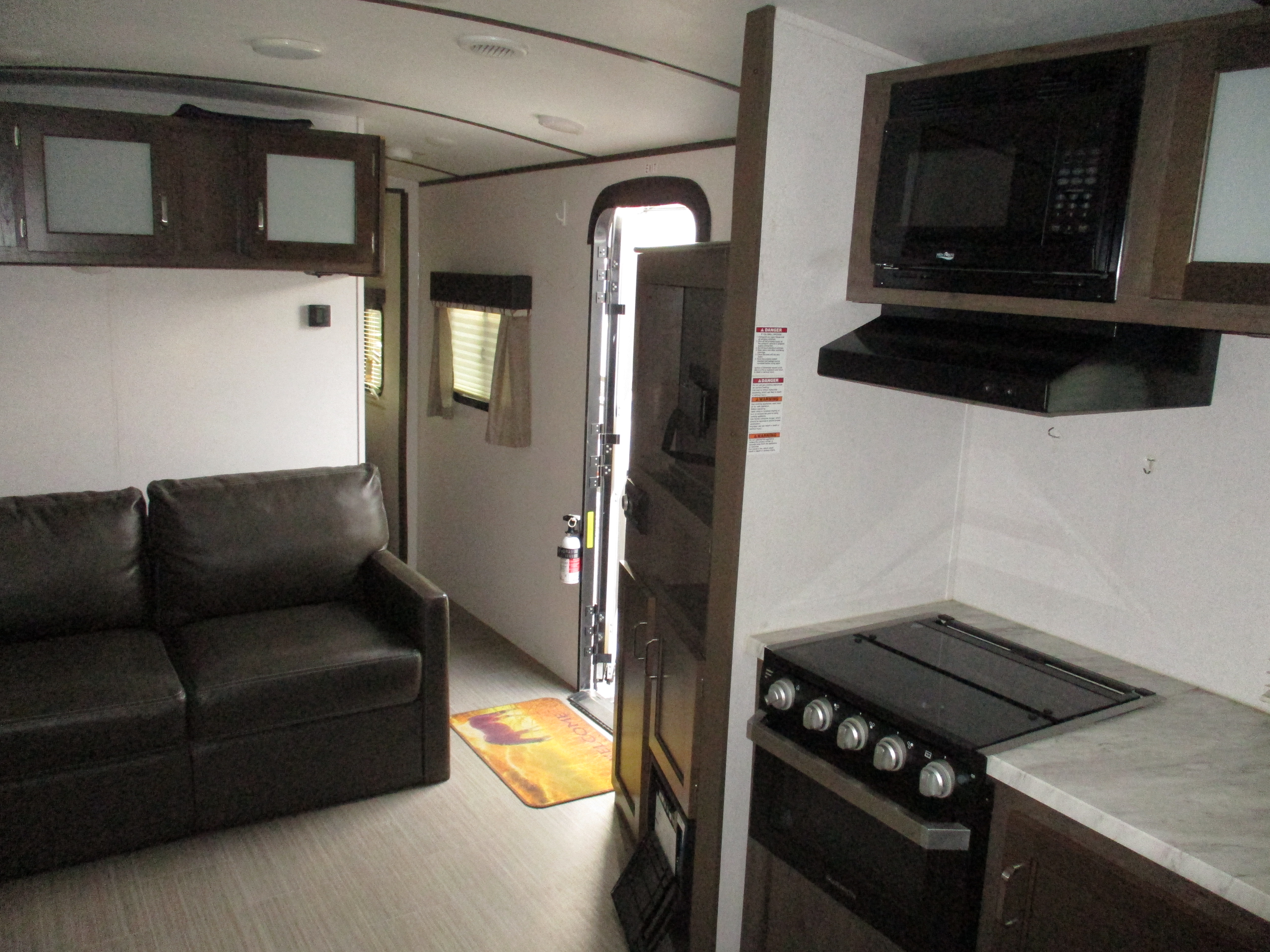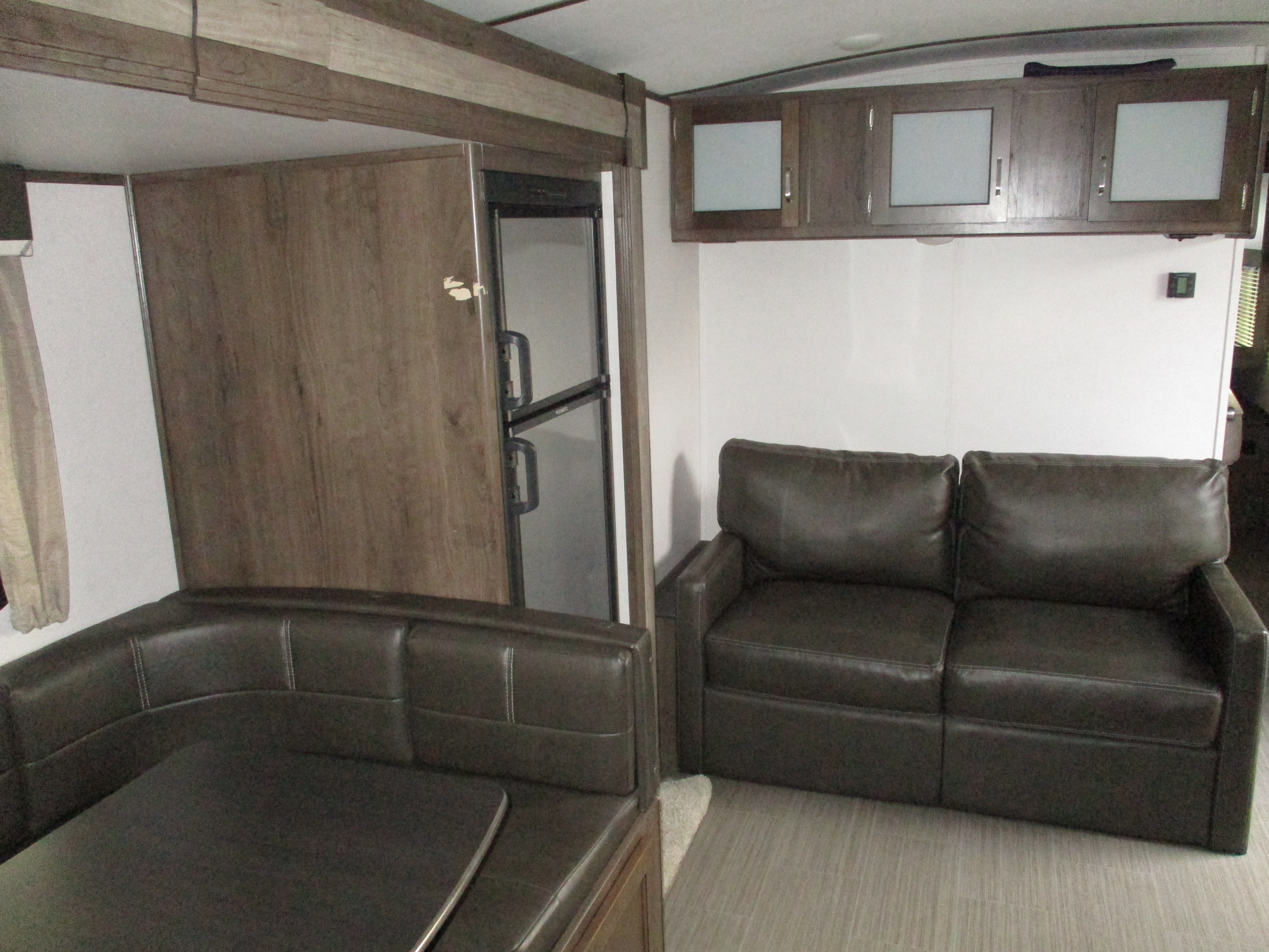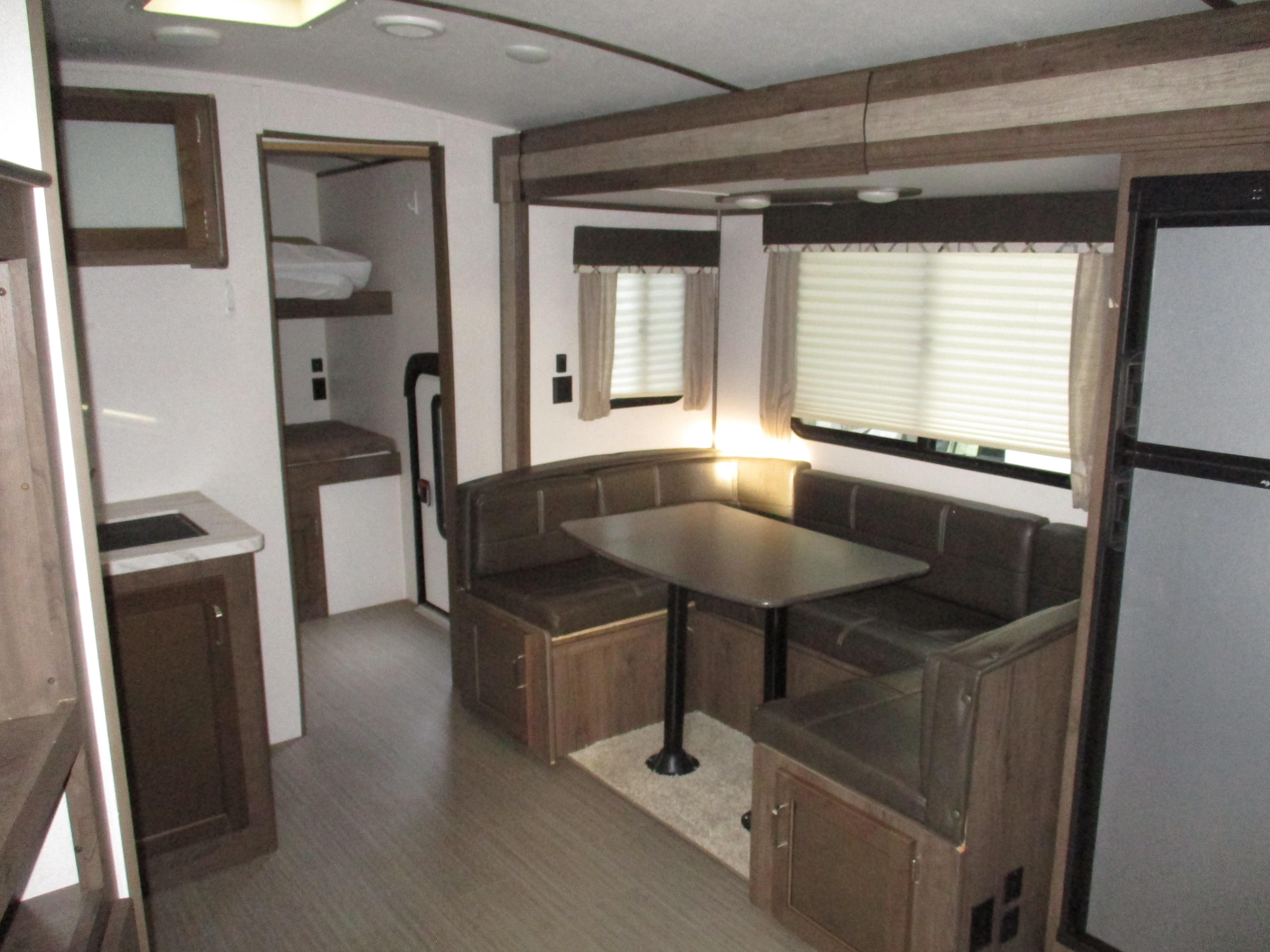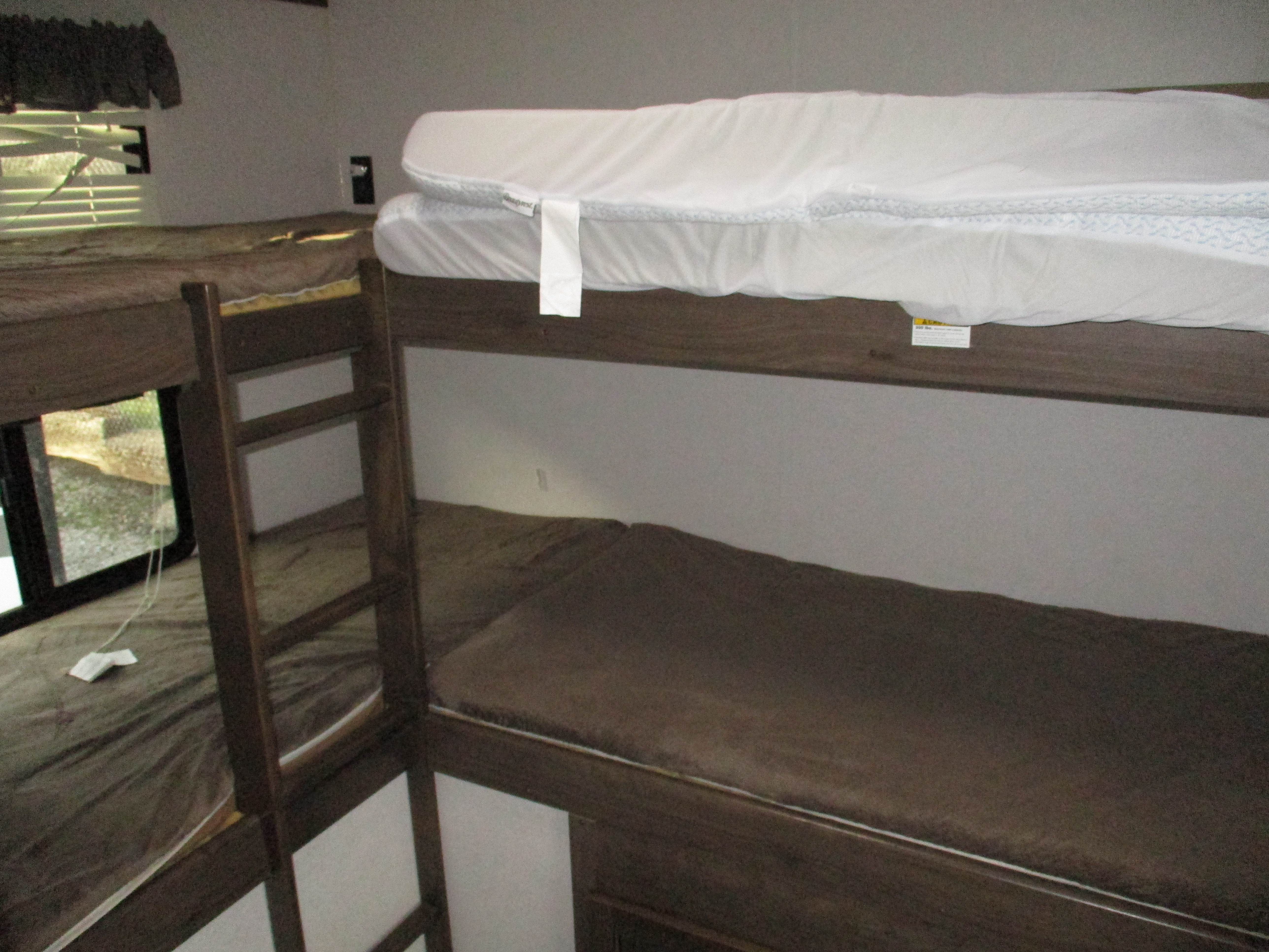 Bunks,Sofa+Dinette Lth,LF.Corner Storage Area Water Damage,Ext.Railing